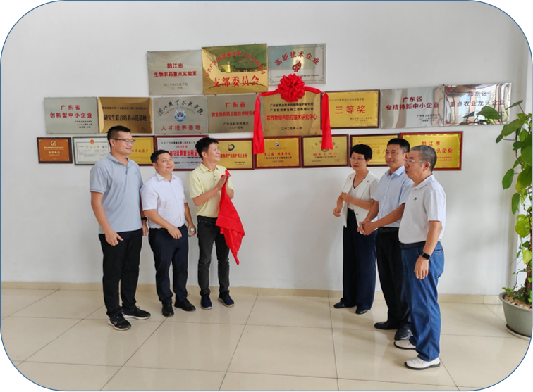 仪式伊始,陈建海董事长对吴亚玲书记一行的到来表示热烈欢迎,并详细介绍了公司在生物科技领域的战略布局与创新成果。吴亚玲书记高度评价公司的发展成就,强调广东省农科院将充分发挥科研优势,推动科技成果转化落地;戴了疑总工程师对公司取得的科技成果予以高度的肯定,希望公司领航阳江市农业绿色防控技术做强做大。在与会嘉宾的共同见证下,双方代表正式签署科研合作实施方案,并为"农作物绿色防控技术研究中心"揭牌。该中心将重点开展绿色防控生物技术研发、成果转化及人才培养等工作。